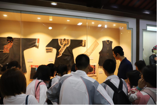 接着畲族讲解员带领同学们参观了畲族文物馆,在娓娓动听的讲解中,同学们学习了解了底蕴深厚的畲族文化,对勤劳勇敢的畲族同胞敬佩不已,对多姿多彩的畲族风情兴趣盎然,对“样式雷”建筑文化叹为观止,对精美绝伦的畲族服饰连连赞叹,对原生态式的畲歌表演鼓掌叫好,对富有处世哲学的畲族家规深受教育。同学们在留言本上纷纷写下的心得感悟。“爱党爱国爱人民,与各民族携手共进,创造祖国新明天!”“五十六个兄弟姐妹是一家,增强民族意识,共为崛起而奋斗。”“民族间的交流促进国家的强大。”“中华文明有着极其深厚的底蕴,让我记忆最深的是样式雷。”“这是一个富有生机、充满活力的民族,此行不仅了解到畲族的历史还受益匪浅。”“这次参观畲族宫,让我了解了畲族的发展,让我惊讶于他们的民族文化,激励我们要保护少数民族文化遗产。”
