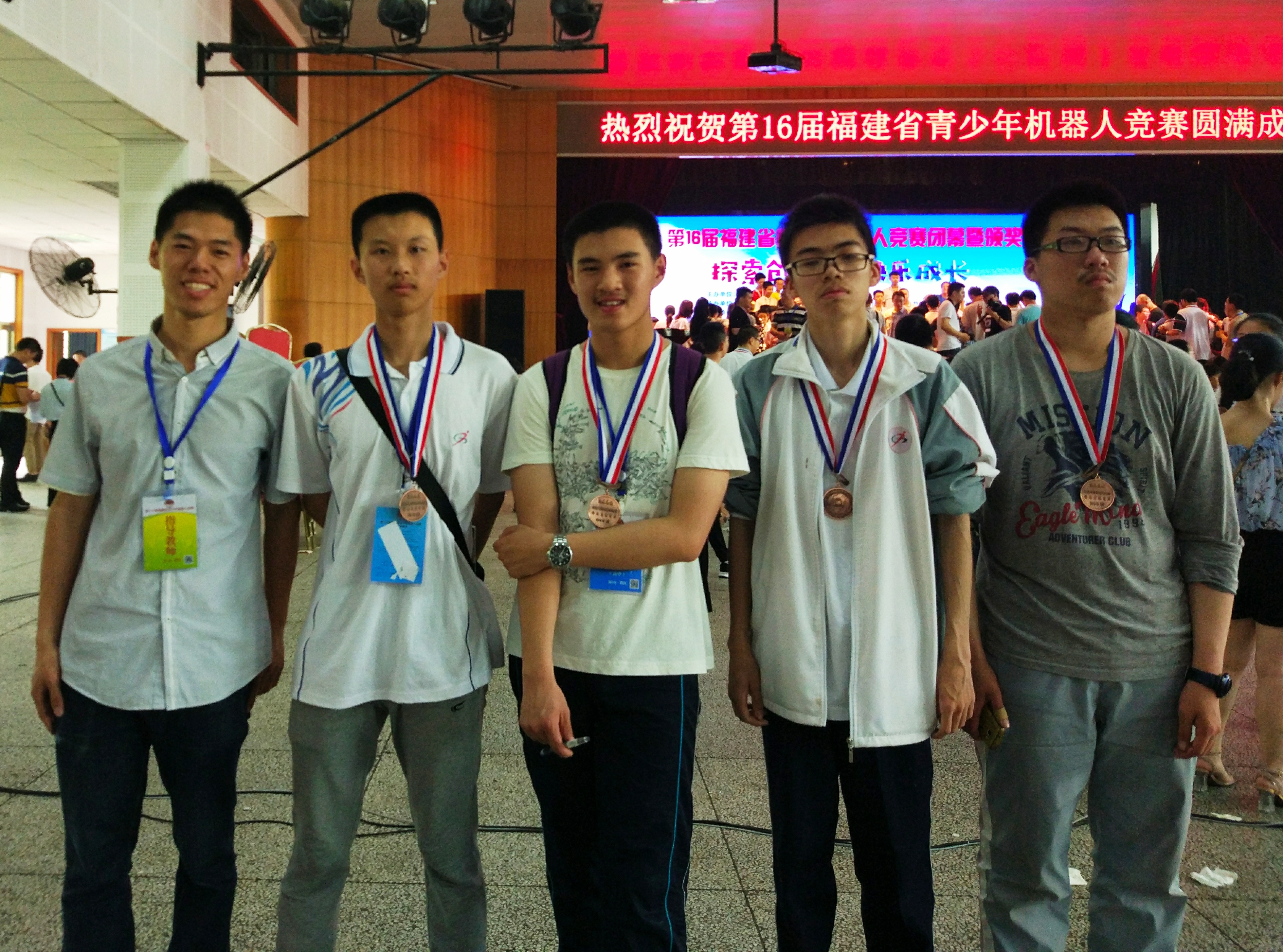 在第十六届福建省青少年机器人竞赛中,我校代表队在高中组WER工程创新赛和综合技能项目中喜获佳绩,获得奖项的老师和同学们是: