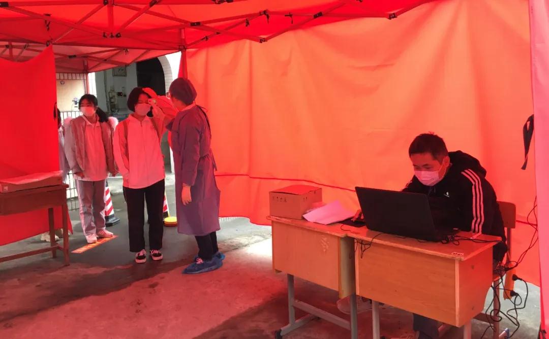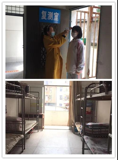 (学生就寝,高三寄宿生实行4人一间就寝,进出宿舍区进行体温监测)